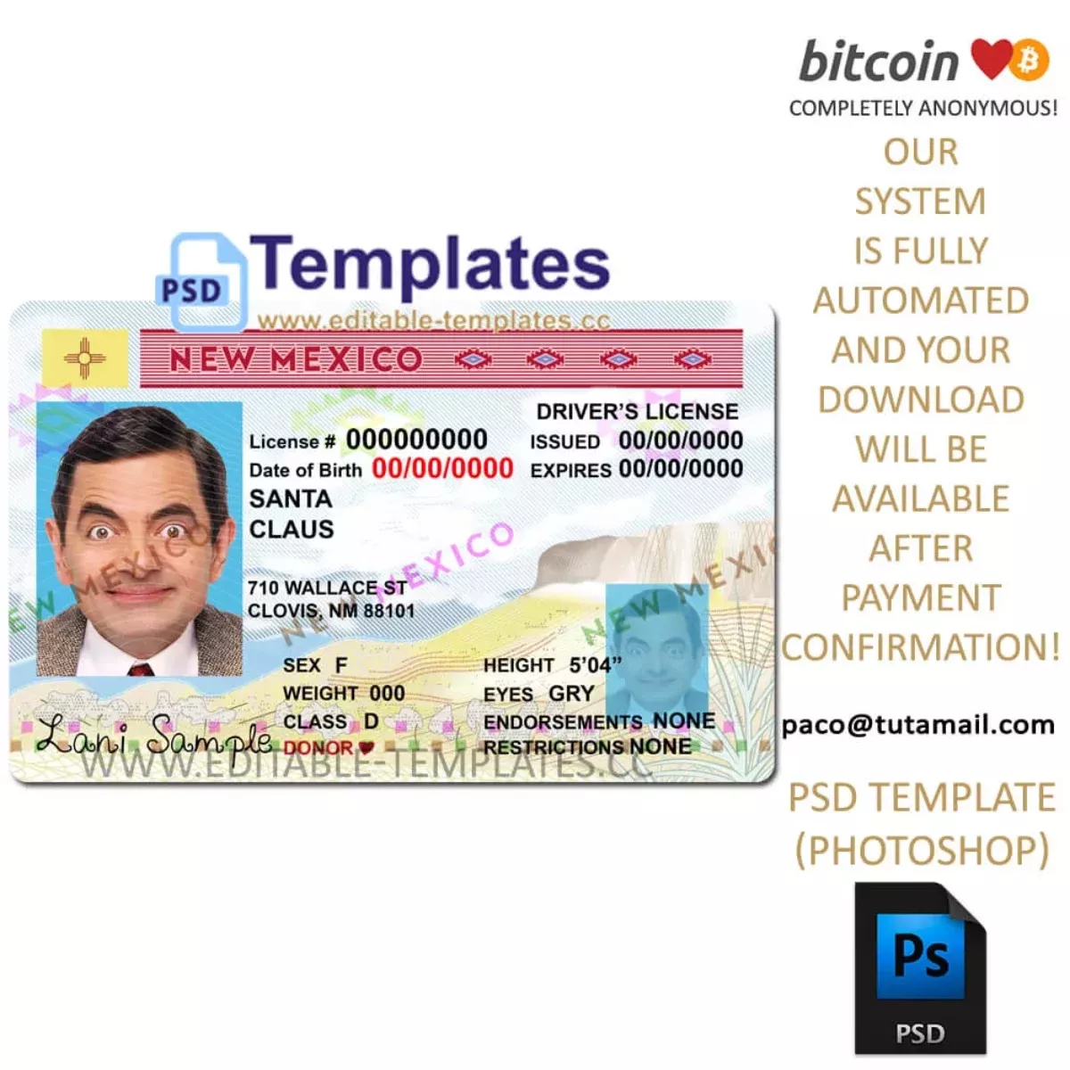 Fully editable New Mexico Driver License PSD Template (photoshop)