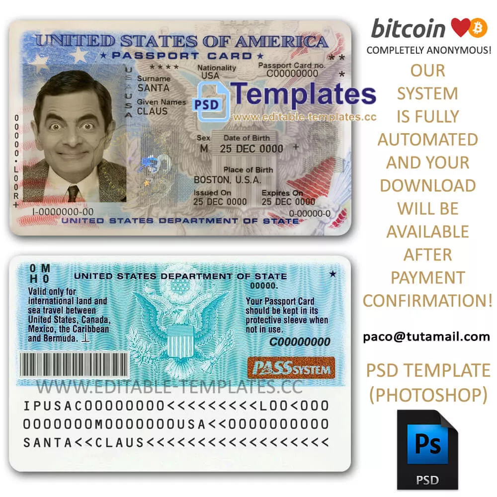 This pre-designed US Passport Card template allow you to input your information and photo quickly and easily, saving you time and effort.